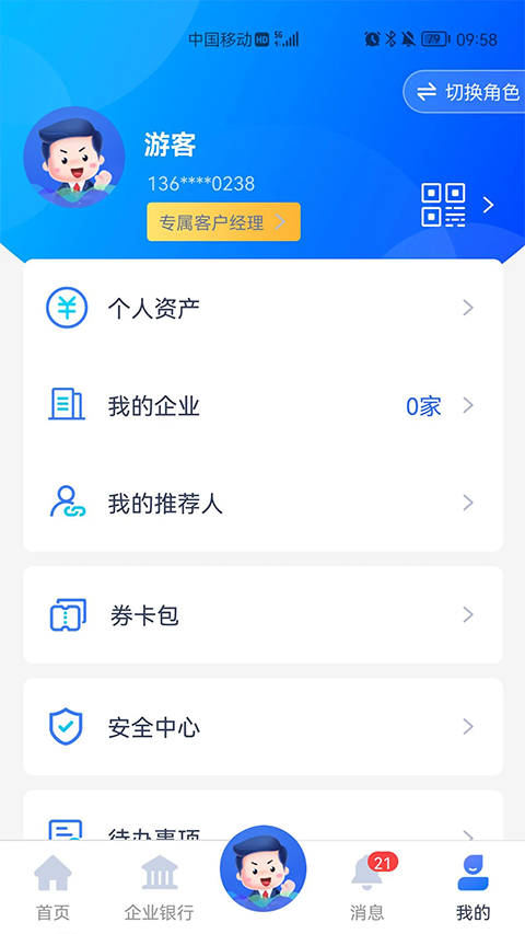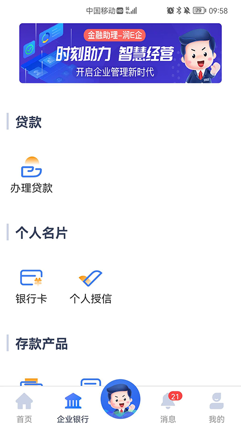 根据渠道特色,企业主、企业主管可通过APP享受不同的金融服务,打造专属客户的金融助理。