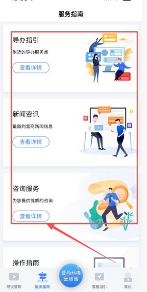 3、服务指南板块提供导办指引、新闻动态与咨询通道等政务服务相关信息。