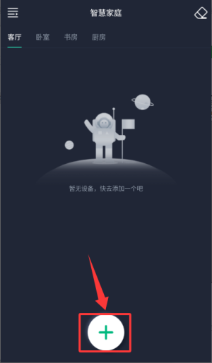 2、在智慧家庭页面点击底部加号按钮,进入添加设备的操作界面。