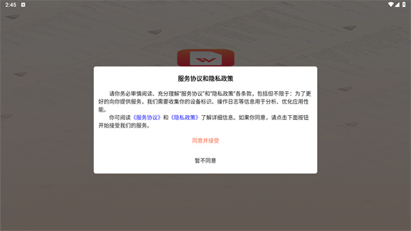 1、进入后阅读相关的服务协议和隐私政策后点击【同意并接受】;