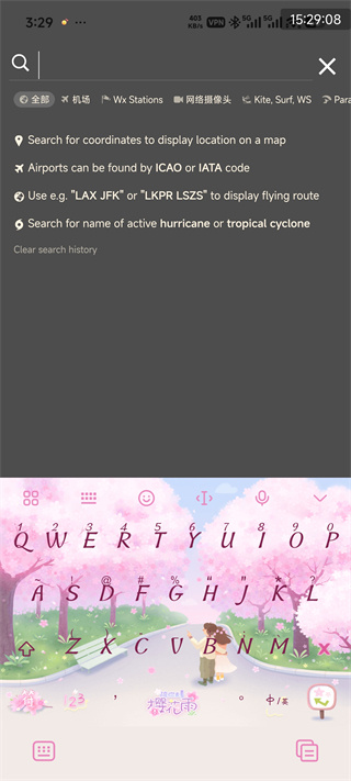 2、点击搜索图标输入城市名、经纬度或机场代码,就能精准定位,还能够直接的去查询路线或追踪飓风等特殊天气的所有信息;